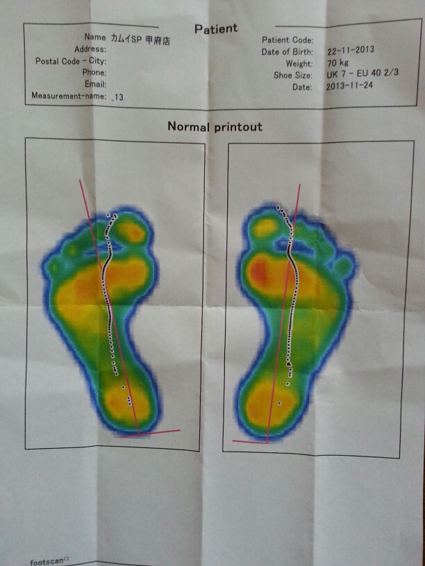 足裏の力のかかり具合などいろいろと出てくるので、どんなアドバイスをもらえるかと思いたのしみにしていたのですが、期待はずれで、理想に近い重心移動といいバランスの力のかかり具合だそうです。